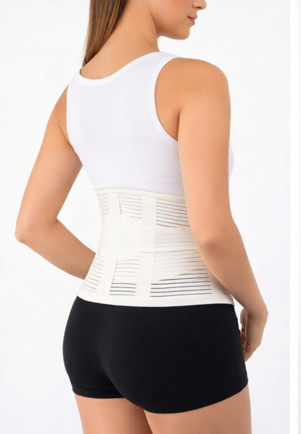 32 cm geniş yapısıyla beli tam kavrayan lumbosakral destek korsesi.